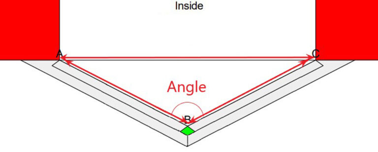 The total width needs to be measured internally from frame edge to edge. In addition, each window unit needs to be measured internally one by one; measure the width of A-B and B-C. Also measure the angle, shown below. Lastly, the height of the windows also needs to be measured.